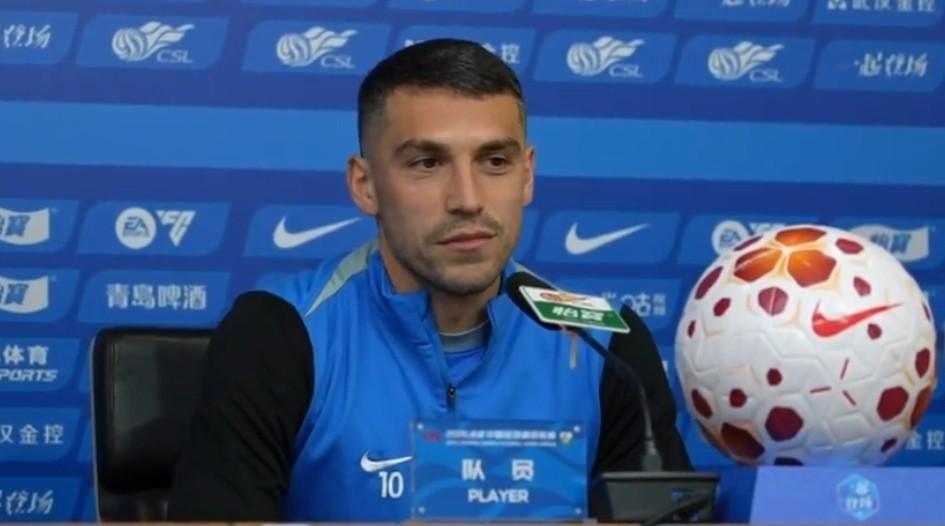 北京时间3月12日,在中超第2轮,大连英博客场对阵武汉三镇的赛前,将战旧主的大连英博外援斯坦丘出席了新闻发布会。