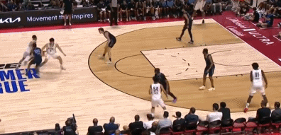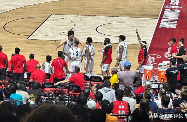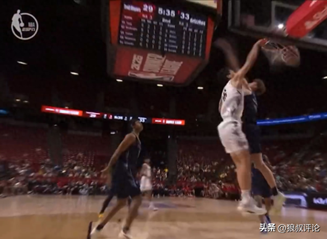 杨瀚森在次节中段,与队友打挡拆配合后,接到传球直捣黄龙完成单臂隔扣,点燃现场,这也是杨瀚森首次在NBA夏季联赛出现招牌式举火烧天暴扣引发外界的热议。