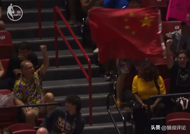 杨瀚森完成暴扣之后,还有现场球迷举起五星红旗,气氛非常炸裂。